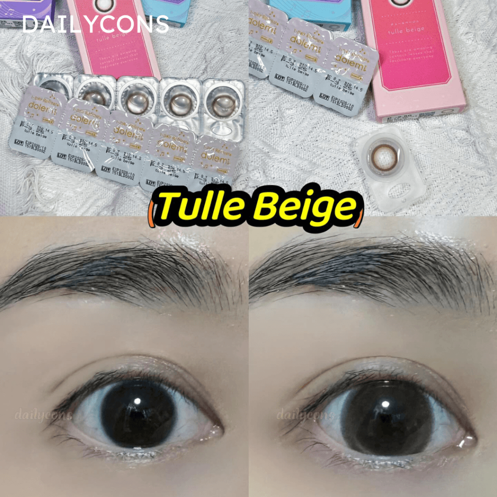 Tulle Beige 圓點設計,巧妙地融入眼睛,帶來閃亮而自然的外觀,無論你係黑眼圈定係棕眼圈,都能輕鬆駕馭。直徑14.5mm,著色直徑13.8mm,完美包覆住眼球,眼睛看起來更加大而有神。